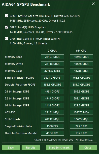 | Processor | Intel Core i5-11400H (2,7-4,5 GHz), 6 kernen, 12 threads, (Tiger Lake, 10nm SuperFin) |