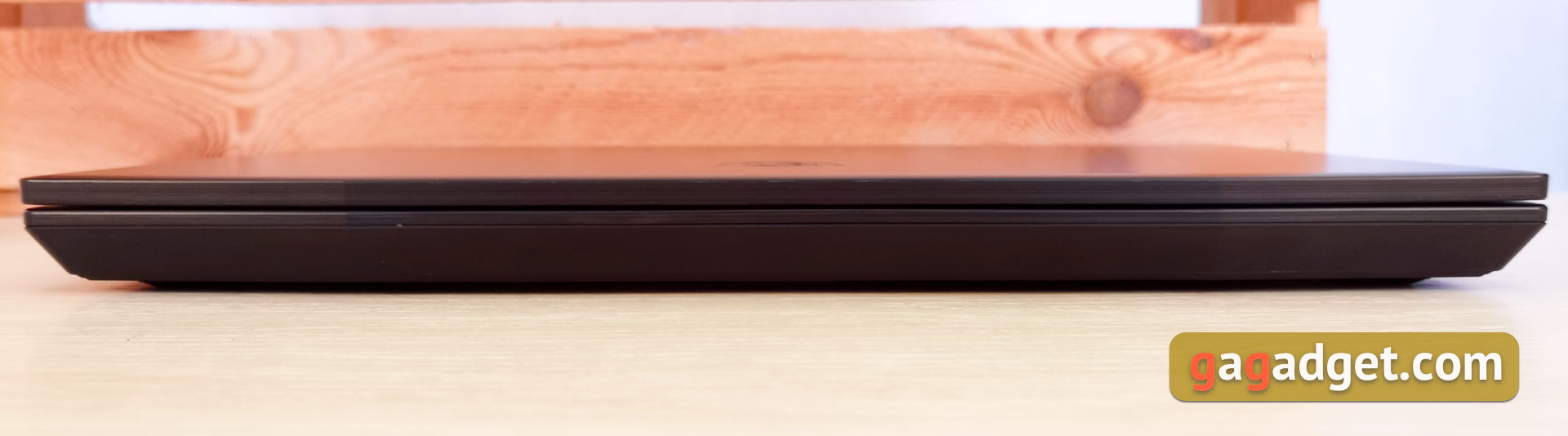De notebook is misschien niet de meest compacte: 359x259x25 cm, 2,1 kg. Maar voor een betaalbaar model zijn de cijfers ruim voldoende. Geen problemen met transport. De bouwkwaliteit is zeer goed. Ondanks het gebruik van kunststof zijn het werkblad en het bovendeksel vrijwel onverwoestbaar. Het uiterlijk is laconiek en, zou je kunnen zeggen, universeel, zonder opzichtige elementen.