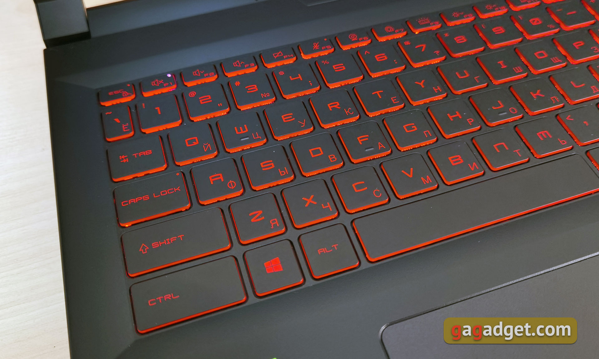 De toetsen hebben een vrij zachte en aangename slag en een comfortabel mat oppervlak, en werken rustig. De volledige slag is 1,7 mm. Er is een rode achtergrondverlichting met drie helderheidsniveaus. Alle tekens worden gelijkmatig verlicht, dus het is gemakkelijk te gebruiken in een donkere kamer.