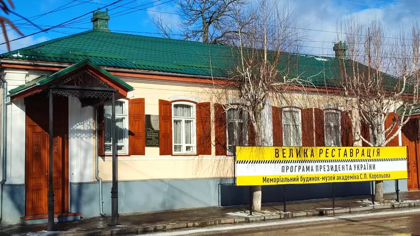Het museum zelf bevindt zich in een rustige straat, de plaats is niet toevallig gekozen - aan de overkant van de weg staat het huis-museum van Korolev, waar hij de eerste 2,5 jaar van zijn leven woonde. In feite heeft Korolev nooit in Zjytomyr gewoond; hij verhuisde met zijn moeder naar Nizjyn, vervolgens naar Odessa, Kiev en Moskou. Dat belet Zhytomyr geenszins om terecht trots te zijn op zijn grote landgenoot, en een uitstekend kosmonautisch museum op te richten in een stad die niets met kosmonautiek te maken heeft. Het is een perfect voorbeeld van hoe men trots kan en moet zijn op zijn geschiedenis en die voor het nageslacht bewaren. Links en rechts van het museumgebouw staat een raket. Er staat een borstbeeld van Korolev bij.