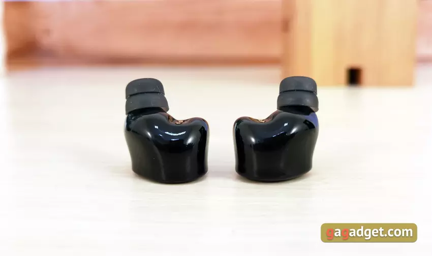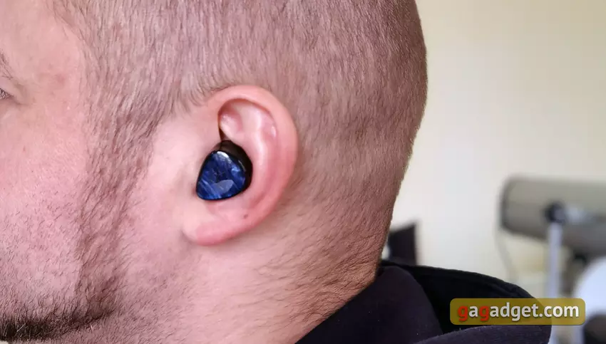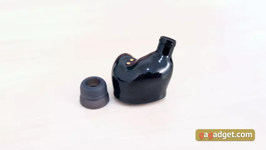 Zoals we meestal gewend zijn bij de aangepaste ontwerpen, is de vorm van de hoofdtelefoon vrij ingewikkeld, met een extra uitsteeksel aan de binnenkant van het oorstuk voor een betere pasvorm in het oor.