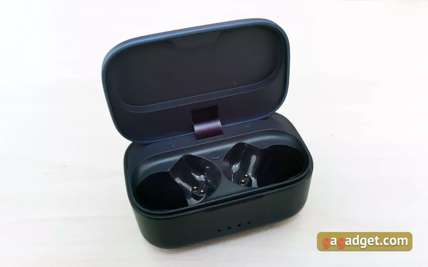 De fabrikant belooft dat de hoofdtelefoon 7,5 uur kan werken op een enkele lading op 50% volume. Snel opladen wordt ondersteund: 15 minuten in de case is genoeg voor 70 minuten gebruik. Volledig opladen van de case duurt ongeveer 1,5 uur. In reële omstandigheden werd de hoofdtelefoon voornamelijk gebruikt met aptX Adaptive codec op 70% volume: de volumemarge is indrukwekkend en het is meestal niet nodig om het volume hoger te zetten. De hoofdtelefoon verdroeg 6,5-7 uur, wat in lijn is met de geclaimde cijfers, en over het algemeen zeer indrukwekkend voor een TWS-model.