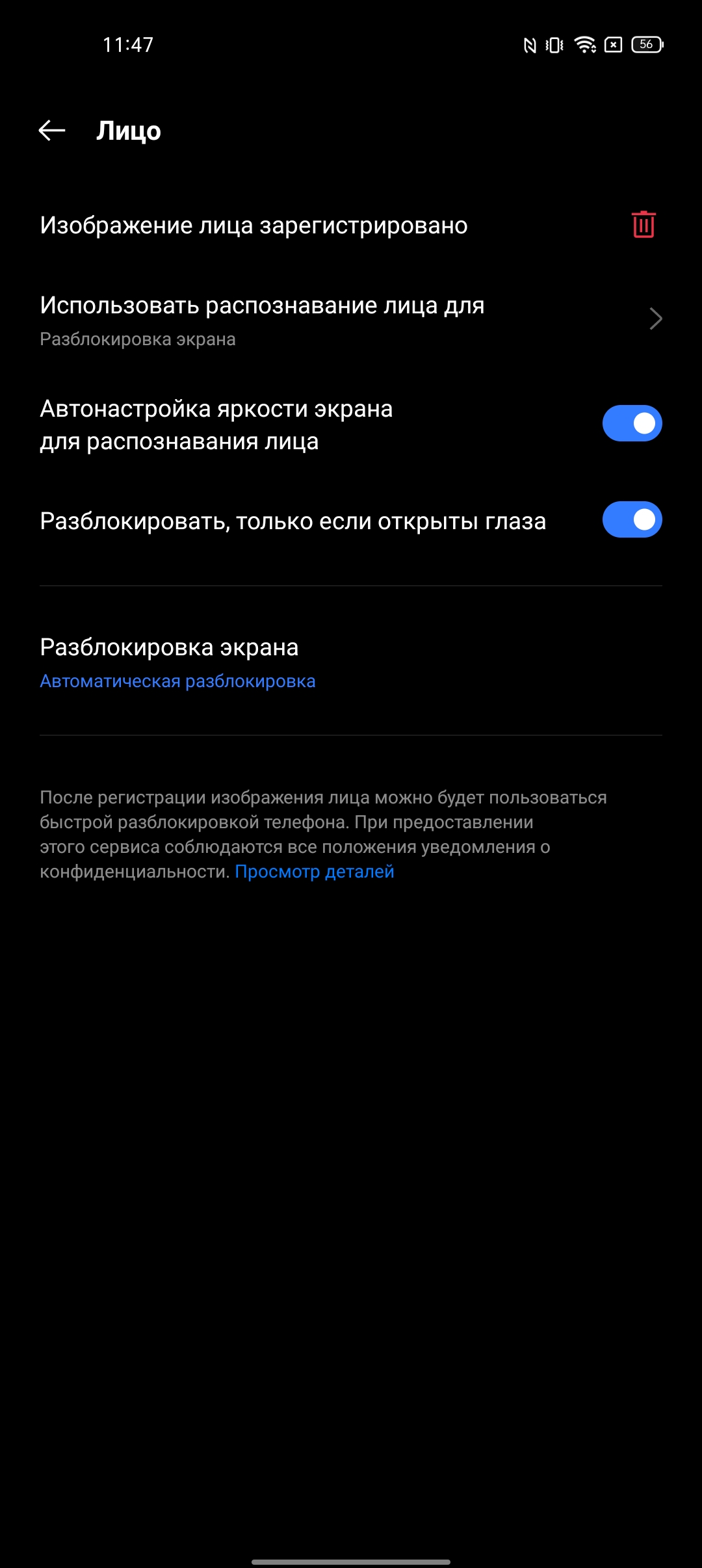 De realme 9i kan worden ontgrendeld met behulp van de vingerafdrukscanner en gezichtsherkenning van de eigenaar. De scanner is klassiek en bevindt zich in de powerknop. Het werkt direct en nauwkeurig. Gezichtsherkenning wordt alleen uitgevoerd door de frontcamera, dus we hebben het niet over verhoogde veiligheid. Maar ook deze werkt in de meeste gevallen snel en nauwkeurig. Voor weinig licht is er een auto-brightening functie (het scherm vult zich wit en verlicht het gezicht). Je kunt ook een functie inschakelen die een gezicht met gesloten ogen niet detecteert.