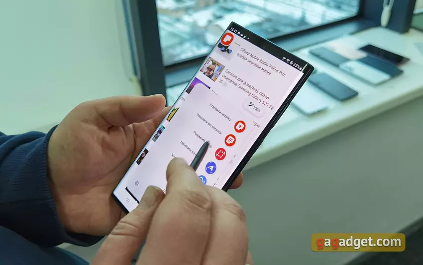 De Ultra heeft een zijdelings gebogen 6,8-inch Dynamic AMOLED 2X display met 3200x1440resolutie en 120Hz verversingssnelheid met een kleine opening voor de frontcamera. Er wordt beloofd dat het scherm beter en helderder is, precies zoals we het graag zien. We zullen het testen tijdens de review, maar voor nu is het de moeite waard om de adaptieve schermverversingssnelheid van 1-120Hz (LTPO matrix gebruikt) en de 240Hz sensorfrequentie te vermelden. De piekhelderheid is 1800 nits, het maximum in de automatische modus is 1200 nits. Er is ondersteuning voor Dolby Vision HDR10+ standaarden. Visueel is het scherm uitstekend, hoewel dit de norm is voor vlaggenschepen van Samsung.