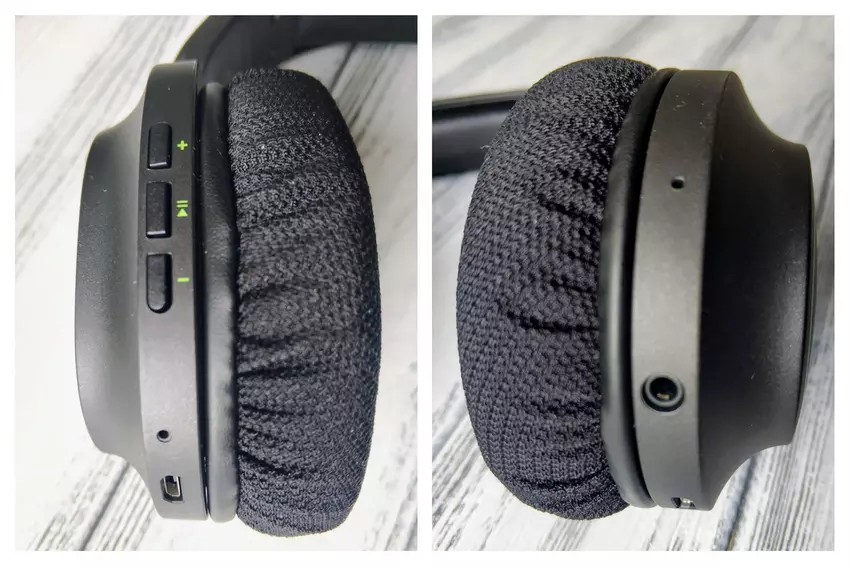De fabrikant claimt een 1000mAh batterij en een batterijduur tot 70 uur. Dit lijkt te kloppen, maar we hebben het niet precies gemeten. Er is ook geen zelfontlading opgemerkt. Als de lading onder de 20% komt begint de LED op de achterkant rood te knipperen en dat zie je alleen als je de koptelefoon afneemt. En ik wil u eraan herinneren dat de meegeleverde oplaadkabel slechts 30 centimeter is, en wanneer u de hoofdtelefoon aanzet gaat hij offline en duurt het oplaadproces ongeveer vier uur, dus als u tijdens het opladen naar muziek op de draad wilt luisteren, neem dan een langere micro-USB-kabel.