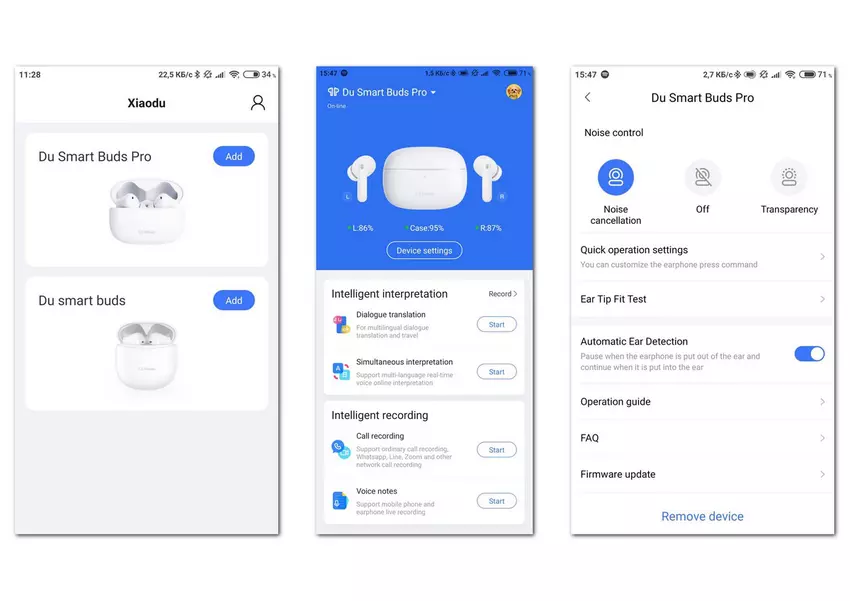 Natuurlijk kunnen de Baidu Smart Buds Pro ook zonder de app worden bediend, maar het is handiger en bevat een aantal interessante "pluspunten". De app heet hetzelfde als de merknaam van de toestellen: Xiaodu. Hij kan worden gedownload uit de Google- of Apple-appwinkels, sluit aan op de hoofdtelefoon, en stelt je in feite in staat om de mogelijkheden van een bepaald model uit te breiden, inclusief het leveren van een extra app-dienst.