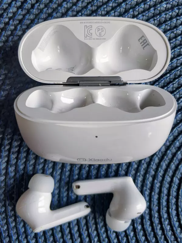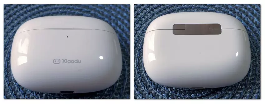De fabrikant schrijft dat"Het ontwerp is geïnspireerd op de vorm van een strandkiezel, wat er stijlvol en mooi uitziet." Ik weet niet hoe het met de kiezels zit, maar de behuizing is glad en gestroomlijnd als natte zeep :) Natuurlijk is het daardoor heel gemakkelijk om het in de zak van zelfs een zeer strakke spijkerbroek te stoppen, maar het "vloog" slecht over de vloer, vooral tijdens de eerste dagen van gebruik ;) Ik wil meteen vermelden dat het plastic vrij dik en dicht aanvoelt, dus ik vond geen sporen van vallen op de body. De bouwkwaliteit is uitstekend, niets piept of spartelt, noch dicht noch open, geen onnodige kieren of onregelmatigheden. Het deksel sluit zeer goed, geen schudden van de behuizing om het te openen. Het ontwerp van het scharnier is vergelijkbaar met dat van de hoofdpromotor van de TWS-hoofdtelefoon. In de case worden de hoofdtelefoons stevig vastgehouden door magneten en vallen ze er niet uit als je met het deksel open schudt. Meer over het uiterlijk van de case en de hoofdtelefoon is te zien op de foto's.