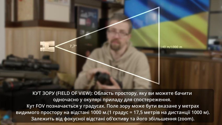 Bereik: Hoe langer hoe beter, maar in de strijd moet het minstens 600 m zijn voor een monoculair en 1000 m voor een verrekijker. Parallel hieraan moet ook de gezichtshoek (fov) worden vermeld. Dit is het gebied van de ruimte dat in de waarnemingseenheid kan worden gezien. Als u op korte afstand moet waarnemen, kiest u een grotere fov. Voor waarnemingsafstanden van een kilometer of meer is een kleinere fov voldoende.