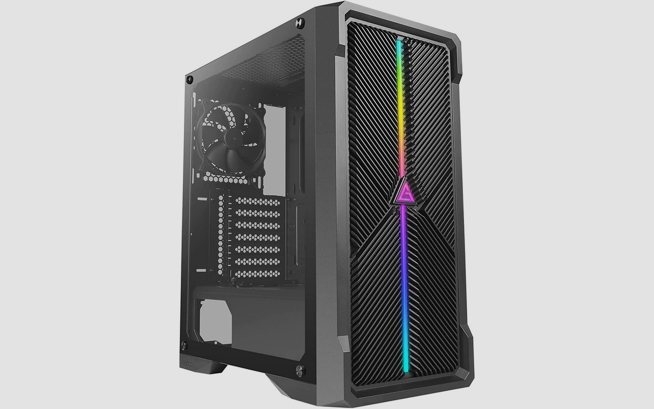 De Antec NX420 is een Amerikaanse full-size Midi-Tower case gemaakt van 0,5mm koudgewalst staal en gehard glas. Voor zijn formaat weegt de case een respectabele 5 kg. Het frontpaneel is voorzien van een geperforeerd rooster voor maximale ventilatie en versierd met ARGB tape. Bij de case wordt slechts één 120 mm fan geleverd zonder verlichting aan de achterzijde. Dit drukt de kosten van het chassis en geeft de gebruiker de vrijheid om te kiezen hoe het pc-koelsysteem wordt geïmplementeerd.