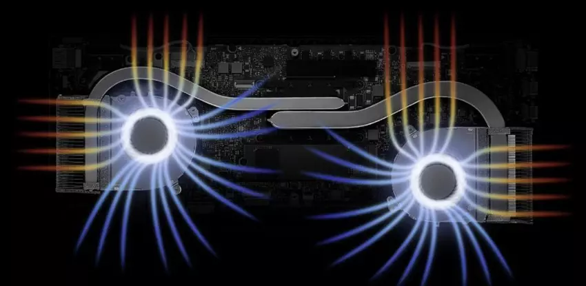 De ASUS Zenbook 14 Flip OLED maakt gebruik van het IceCool Plus koelsysteem met twee 8mm en 6mm heat pipes en twee nieuwe IceBlades ventilatoren met 87 en 83 bladen. Ze zijn gemaakt van vloeibaar kristal polymeer, lichter en dunner dan conventionele ventilatoren. Ze hebben een gebogen vorm die aerodynamisch is ontworpen om een hogere luchtstroomdruk te bieden. Bovendien maken de IceBlades-ventilatoren gebruik van hydrodynamische lagers, die trillingen en lawaai helpen verminderen in vergelijking met andere soorten lagers.
