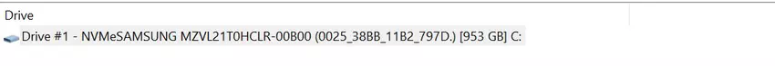 Als schijf wordt een 1TB PCIe Gen4 x4 NVMe v1.4 SSD van Samsung PM9A1 gebruikt. De geclaimde leessnelheid is tot 7000 MB/s en de schrijfsnelheid tot 5100 MB/s.