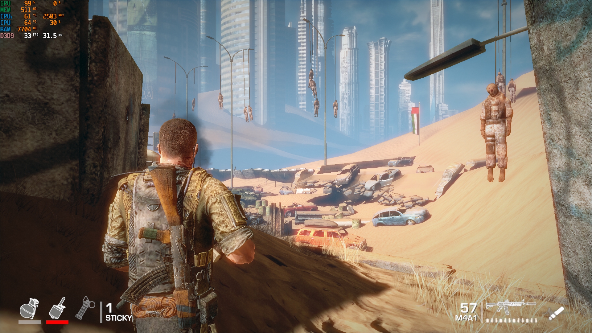 Natuurlijk worden bedrijfslaptops bijna nooit gebruikt om te gamen. Maar voor het geval iemand zo'n idee heeft, niet de nieuwste games zijn goed speelbaar. Op minimum-medium instellingen in DOOM 2016, Sleeping Dogs Definitive Edition, Spec Ops The Line haal je een redelijk stabiele 30 FPS.
