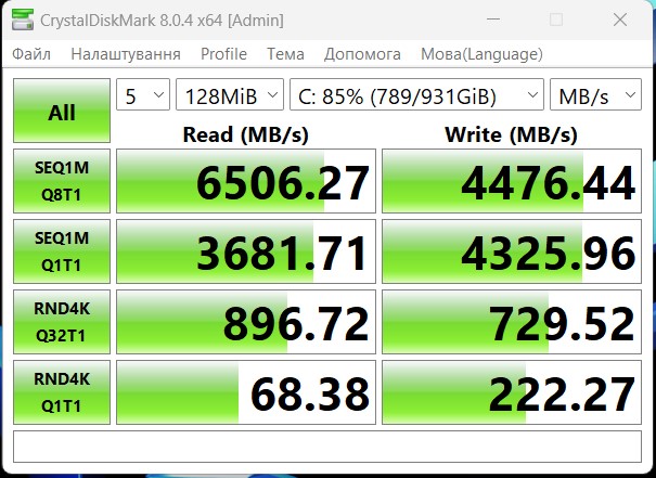 De schijf is een M.2 PCIe Gen4 x4 NVMe SSD, een Micron 3400 1TB model. Het belooft tot 6600MB/s leessnelheid en tot 5000MB/s schrijfsnelheid. Notebook heeft twee M.2 drive slots en ze kunnen worden gecombineerd tot een RAID0 array.