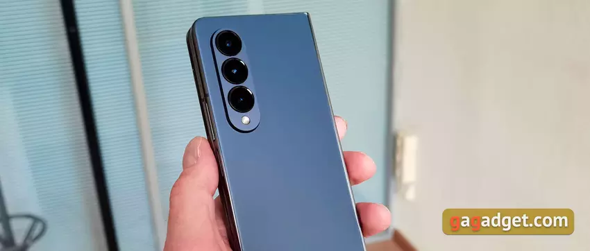 Een van de weinige verschillen tussen de Fold4 en Fold3 die met het blote oog kan worden opgemerkt (hoewel je de telefoon in je handen moet houden om het verschil te zien - het zal je moeite kosten om het van een afstand te zien), zijn de herziene afmetingen van de buitenkant. Dit heeft op zijn beurt de verhoudingen en de grootte van de schermen beïnvloed. Het nieuwe toestel is 3,1 millimeter lager geworden. Tegelijkertijd is de uitgeklapte behuizing 2 millimeter breder geworden. Samen met de kleinere schermranden heeft dit geleid tot een grotere breedte van beide schermen - de buitenste met 2,7 mm, en de binnenste met 3 mm. Dat wil zeggen dat het belangrijkste "tablet"-scherm dichter bij een vierkant kwam te liggen (maar het nog steeds niet werd). In de praktijk bleek het echt comfortabel te zijn - het is duidelijk dat de smartphone-ontwikkelaars de verhoudingen niet in een opwelling en niet omwille van de veranderingen zelf hebben veranderd, maar als gevolg van pogingen om het werkcomfort te verbeteren.