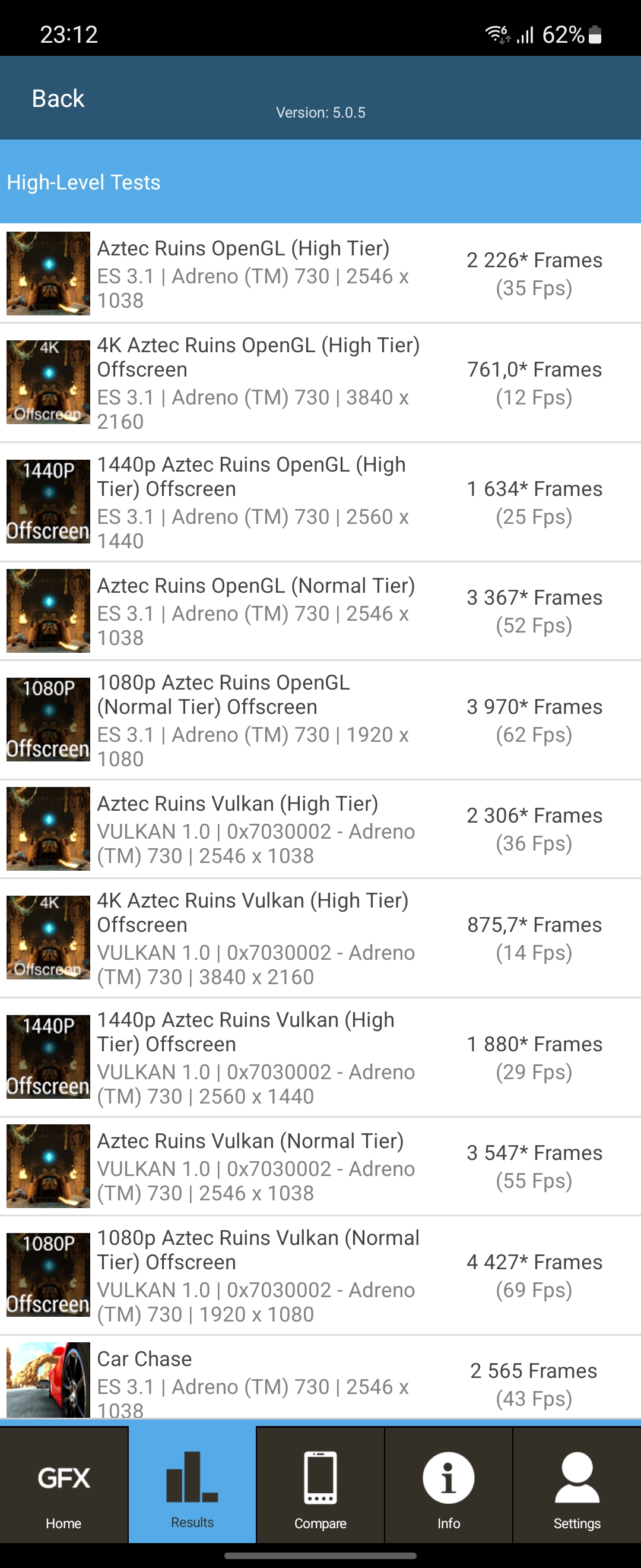 In de praktijk wordt de behuizing alleen een beetje warm bij veeleisende games en bij gebruik van de smartphone als mobiele hotspot. De prestaties dalen echter niet, apps werken snel. We hebben het in veel Samsung smartphone reviews al gehad over de Game Center gaming app, deze is niet veranderd. De smartphone "trekt" moderne games zonder problemen. Call of Duty Mobile bij maximale grafische instellingen draait op 60 frames per seconde, Genshin Impact - 50-60 FPS, Shadowgun Legends cijfer schommelt tussen 90-120 FPS.