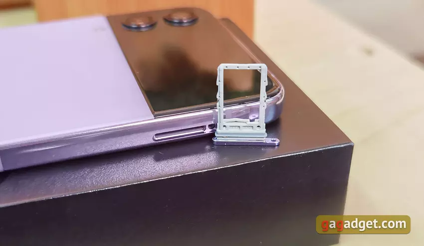 Alle standaard noodzakelijke elementen zitten op hun bijna vertrouwde plaats. Aan de rechterkant zit de dubbele volumeknop, net daaronder zit de powerknop, die ook dienst doet als vingerafdrukscanner. De knoppen zijn door het ingewikkelde ontwerp iets hoger geplaatst dan op standaard smartphones. Het is een beetje onhandig in het begin, maar het duurt letterlijk een of twee dagen om eraan te wennen. Links zit de lade.