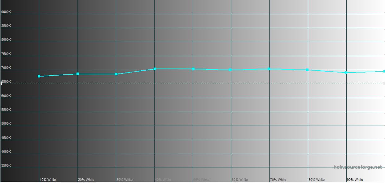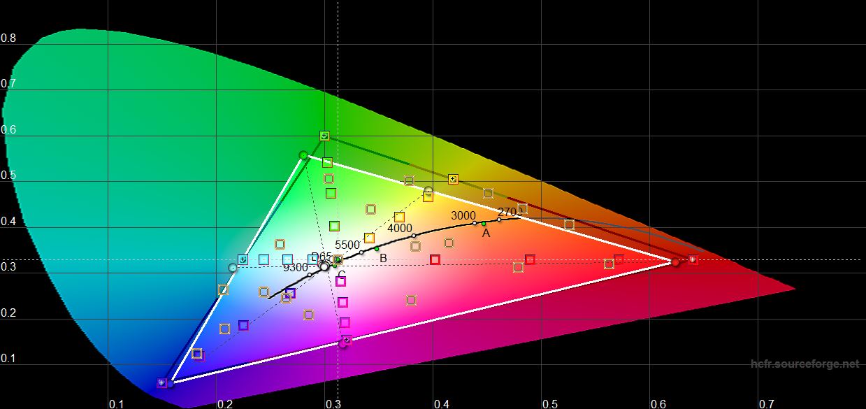 In de "Natural"-modus ligt de kleurdekking dicht bij sRGB, zij het in geringe mate. De maximale helderheid is lager: 629.093 cd/m2. De kleurweergave is ook vrij nauwkeurig.