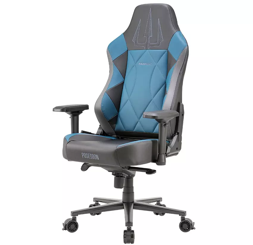 FragON 7x Poseidon is een ergonomische fauteuil geschilderd in de kleur van zeegolven en versierd met een drietand van de oude Griekse zeegod Poseidon. FragON 7x is ook verkrijgbaar in andere kleuren. Niet alleen het frame van de fauteuil is van metaal, maar ook de armleuning met wieltjes. U kunt kiezen uit twee sets wielen: zachte, stille en met een remmechanisme als de gebruiker strikt op één plaats wil zitten. De stoel is aan de buitenkant bekleed met praktisch eco-leer en aan de binnenkant gevuld met "koudschuim" met een orthopedisch singeleffect.