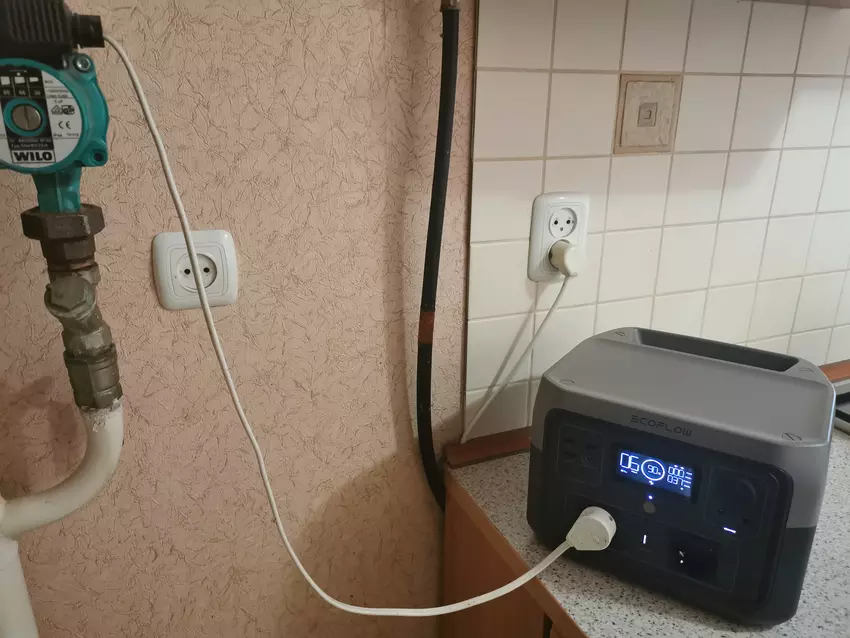 Als u wilt, kunt u een elektrische waterkoker met een vermogen van ongeveer 1,5 kW aansluiten op de EcoFlow River 2 Max. Maar eerst moet u de mobiele app openen en de X-Boost-modus activeren. De waterkoker zal dan werken door de spanning in het stopcontact te verlagen. Maar men moet begrijpen dat het water niet zo snel kookt als wanneer het op een normaal stopcontact is aangesloten. Hetzelfde geldt voor de magnetron en het koffiezetapparaat.