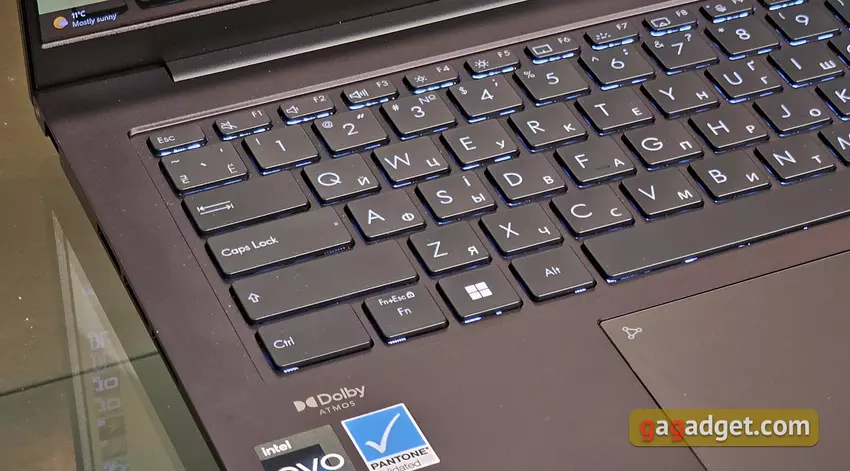 De ASUS Zenbook 14X OLED (UX3404VA) maakt gebruik van het ErgoSense toetsenbord: de toetsafstand is 19,05mm, het oppervlak is 0,2mm hol en de volledige slag is 1,4mm. De ingedrukte toets steekt 0,1 mm boven het werkoppervlak uit. De bedieningskracht is 25-34 g, en de maximale bedieningskracht is 62 g. Het toetsenbord is zeer comfortabel: het indrukken gaat vrij zacht, maar is toch informatief. Er is een witte achtergrondverlichting met drie helderheidsniveaus.