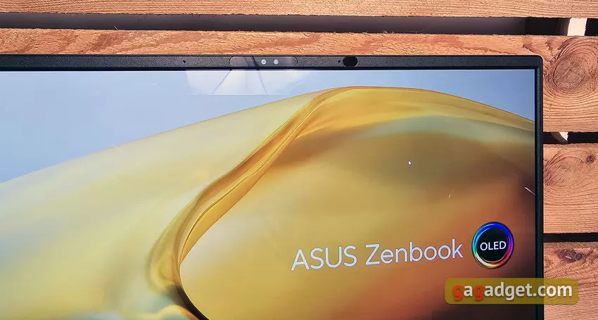 De randen rondom het scherm zijn dun, vooral aan de zijkanten. Het scherm beslaat 89% van het oppervlak. Boven het scherm bevindt zich een webcam met indicator, een infraroodcamera voor identificatie van de eigenaar, twee microfoons, een lichtsensor voor automatische helderheidsaanpassing en een RGB-sensor voor automatische aanpassing van de kleurtemperatuur van het scherm. De webcam biedt FullHD-resolutie en ondersteunt het ASUS AiSense-pakket met beeldverbeteringsfuncties. Er is achtergrondonscherpte, lichtcorrectie, blikrichtingcorrectie, motion tracking, filters en ASUS 3D Noise Reduction (3DNR) real-time technologie.