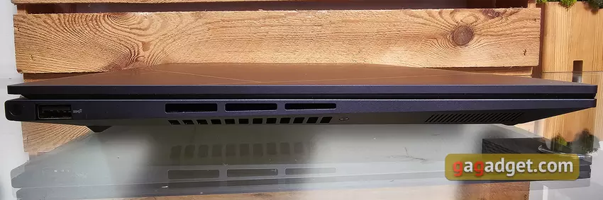 Aan de linkerkant is een enkele full-size USB Type-A 3.2 Gen 2 en ventilatiegaten: