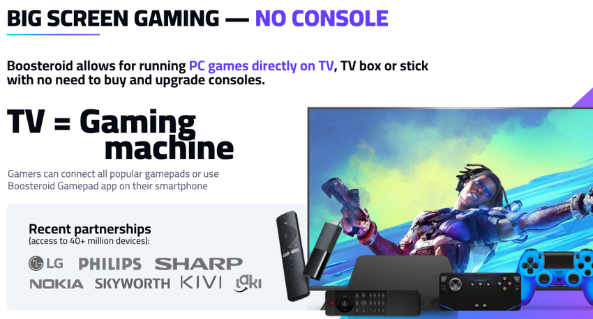 Artem Skoryi: Als we Philips, Sharp, Skyworth en LG nemen, is onze applicatie geïnstalleerd op alle tv-toestellen van een bepaald productiejaar. Natuurlijk, als deze TV-toestellen al verkocht zijn, verschijnt de applicatie daar pas als de gebruiker hem zelf installeert of de software-update uitvoert. Wat Samsung betreft, hebben we onze app nog niet officieel gelanceerd, maar dat zijn we wel van plan. Maar nu is de Boosteroid-app al beschikbaar op meer dan 30 miljoen toestellen op Android TV en webOS TV.
