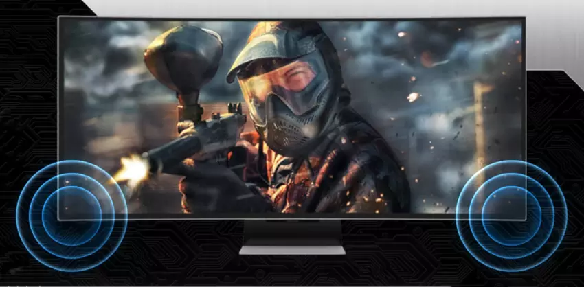Een ander technologisch kenmerk dat gamers zal aanspreken, is het akoestische systeem dat in het oppervlak van het scherm is ingebouwd. Het is een oplossing waarbij het slanke profiel van de monitor behouden blijft, terwijl er voldoende ruimte overblijft op uw bureau. Bovendien is het een verbazingwekkend cool stukje technologie dat een snaar raakt en je het gevoel geeft dichter bij de toekomst te staan dan ooit tevoren. Bovendien is de monitor uitgerust met geluidssignalen die beginners helpen hun spelniveau te verbeteren en je nuttige vaardigheden aanleren die van pas zullen komen.