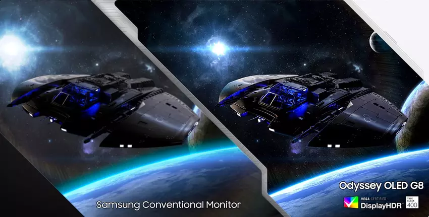 In tegenstelling tot andere OLED displays ondersteunt de Odyssey OLED G8 de DisplayHDR True Black 400 standaard, ontwikkeld om de kwaliteit van HDR-enabled displays te beoordelen. Dit betekent dat VESA het uitgebreide kleurengamma van deze monitor bevestigt (Samsung verklaart dekking van 99% van de DCI-kleurruimte) en de minimale piekbeeldhelderheid van 400 cd/m2