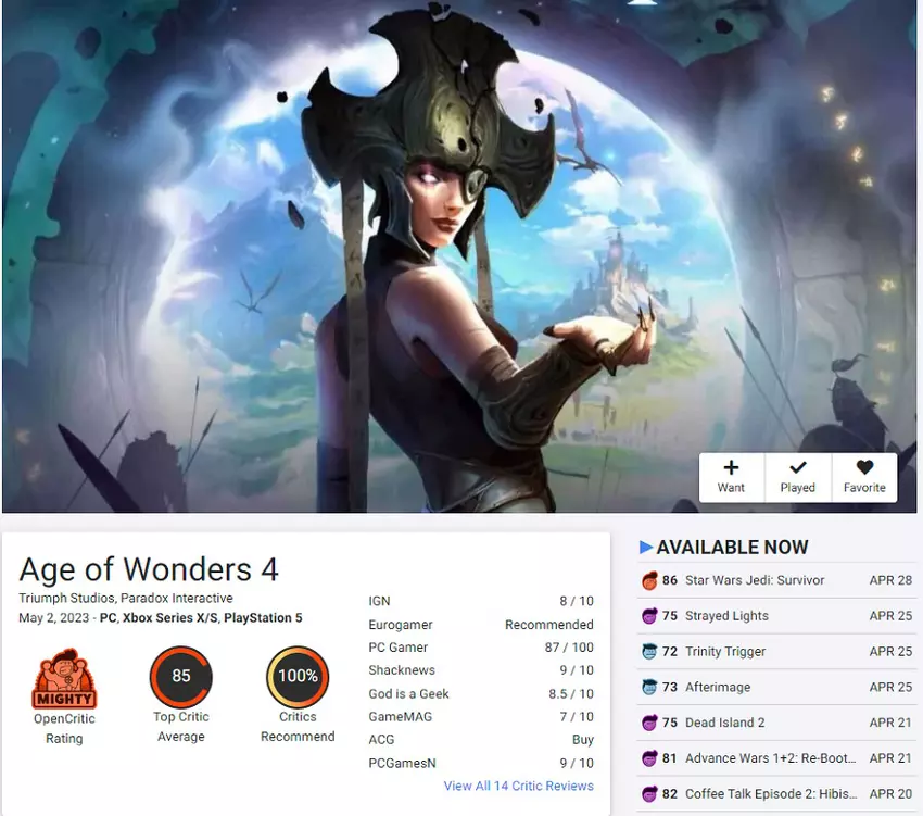 De pc-versie van Age of Wonders 4 is al beoordeeld door de critici en zij zijn tevreden over het spel, zoals blijkt uit de beoordelingen op de aggregators: de strategie kreeg 83 punten op Metacritic en 85 punten op Opencritic, en het spel wordt aanbevolen door 100% van de experts van dit portaal.