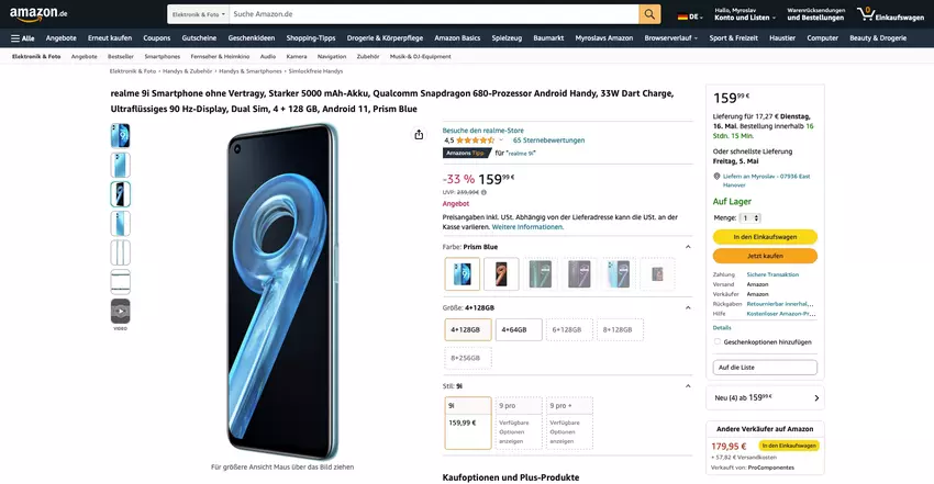 80 euro korting: realme 9i met 90Hz scherm, Snapdragon 680 chip en 5000 mAh batterij te koop op Amazon voor 159 euro
