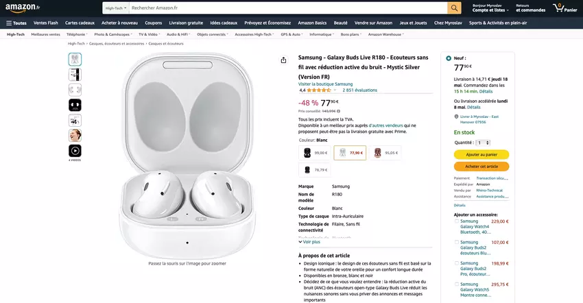 Samsung Galaxy Buds Live op Amazon: TWS-koptelefoon met ANC, IPX2-bescherming en uniek ontwerp voor €76