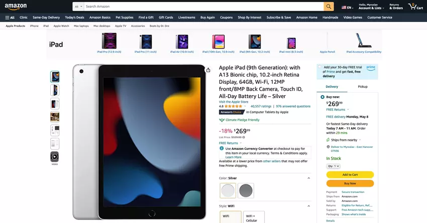 - iPad (9e Gen) 64 GB, Wi-Fi - $352.99.