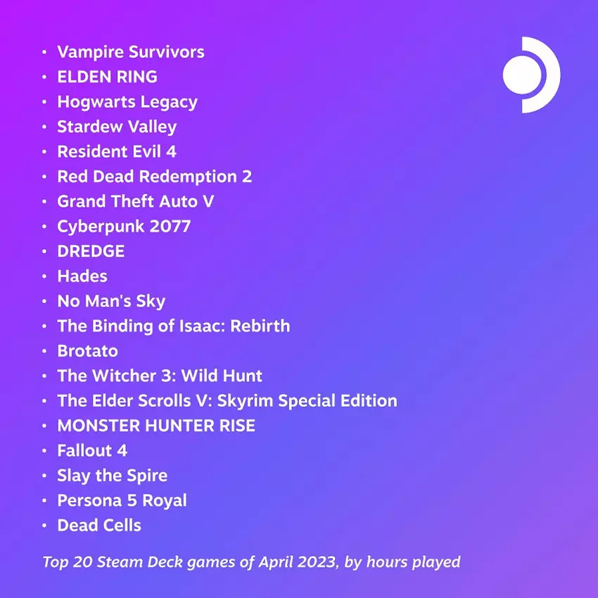 Valve heeft een lijst onthuld van de populairste games bij Steam Deck-gebruikers voor april.