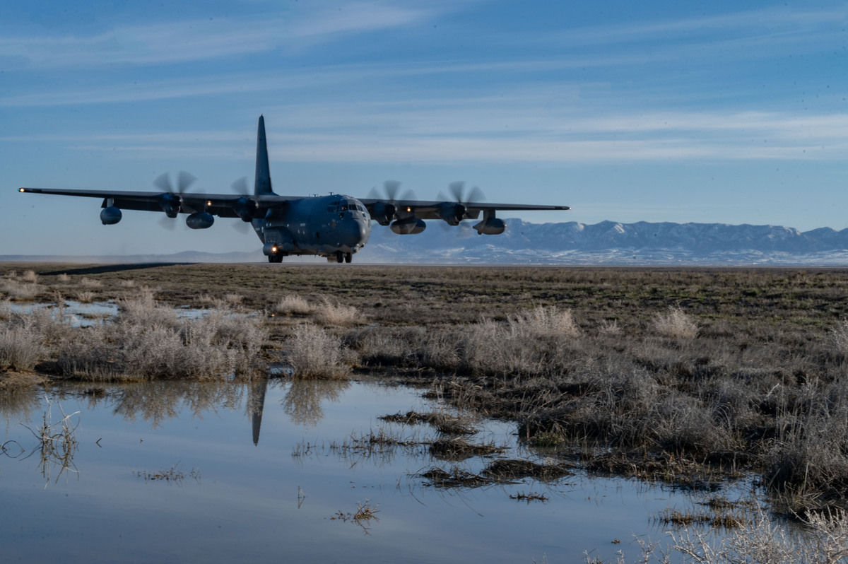 Het vliegtuig landde op Highway 287, waar een voorwaarts wapen- en bijtankpunt werd ingericht. Specialisten voerden herbewapenings- en bijtankoperaties uit, waarna het militaire voertuig weer het luchtruim koos.