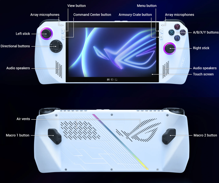 De ASUS ROG Ally is ontworpen voor AAA-games met Full HD-resolutie. Daartoe is de draagbare spelcomputer uitgerust met de AMD Ryzen Z1 Extreme processor. Deze beschikt over Zen 4 kernen tot 5,1GHz en RDNA 3 grafische chip. De prestaties bereiken 8,6 TFLOPS.