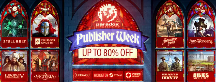 In de eerste plaats zullen fans van grootse strategieën geïnteresseerd zijn in de campagne, want er gelden kortingen tot 80% voor franchises als Crusader Kings, Cities: Skylines, Victoria, Hearts of Iron, Europa Universalis en Stellaris. De aanbieding heeft ook betrekking op veel add-ons voor de games.