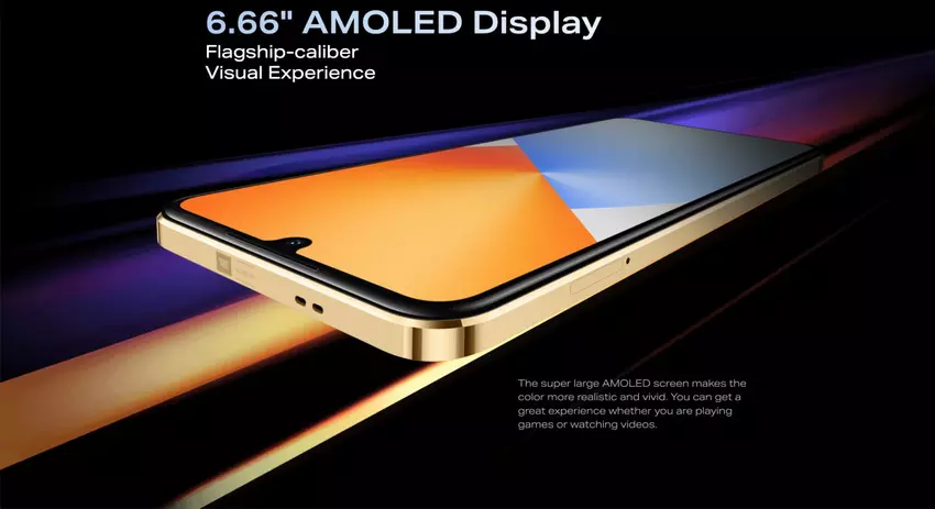 De Infinix Note 30i heeft een AMOLED-scherm zonder ondersteuning voor hogere vernieuwingsfrequenties. De diagonaal is 6,66" en de resolutie is 1080 x 2400 pixels.