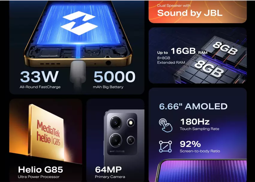 Infinix Note 30i - Helio G85, 64MP camera, JBL stereo speakers en Android 13