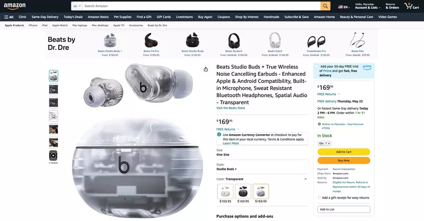 Apple is begonnen met de verkoop van de nieuwe TWS-koptelefoon Beats Studio Buds+ op Amazon.