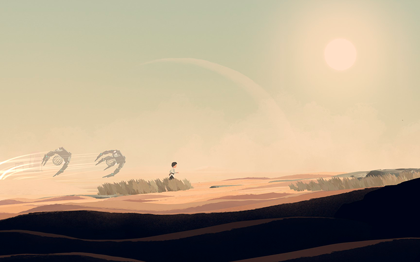 Het spel begint ermee dat we ons in een dorp bij een meer bevinden en met ons zusje spelen: rennen, springen, ons verbergen voor een boze grootmoeder die in de keuken iets kookt, en een wandeling maken buiten het dorp - het bos in. En op dit punt laat het spel ons zien wat we zullen doen tot de aftiteling rolt. Een leger van mysterieuze machines arriveert op de planeet en ontvoert onze zus. Even later vernietigen ze de nederzetting en alles wat ze zien. En dus moet een klein meisje, volgens alle wetten van het genre, veranderen in een dappere heldin en haar zus redden en tegelijkertijd de hele wereld. Maar wees niet verrast door zo'n triviaal (op het eerste gezicht) plot - het is secundair in het spel. Als de ontwikkelaars echt een rijk verhaal hadden willen creëren, zouden de personages hier Engels spreken, en niet een onbekende taal bestaande uit een reeks verschillende geluiden. Dit is echter niet wat de aandacht trekt. Het belangrijkste aan Planet of Lana is de sfeer van het reizen.