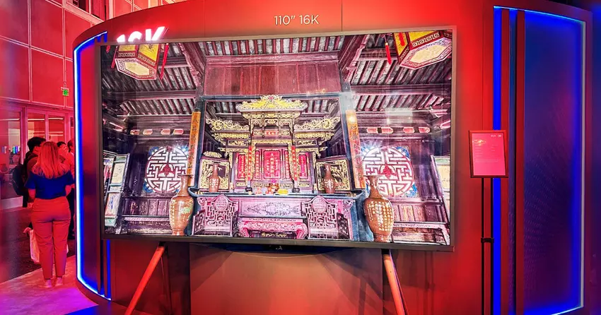 BOE heeft een 110" diagonaal vloeibaar kristalpaneel ontwikkeld. Het 16K-formaat betekent dat het scherm 8.640 pixels verticaal en 15.360 pixels horizontaal heeft, wat vier keer groter is dan 8K en 16 keer groter dan 4K. Het beeld bestaat uit 132 miljoen pixels.