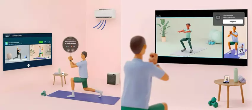 Een ander voorbeeld is de Samsung slimme airconditioner serie WindFree. In eerste instantie lijkt het erop dat de app alleen de mogelijkheden van de afstandsbediening dupliceert: hiermee kun je het apparaat in- en uitschakelen, de werkingsmodi aanpassen en de temperatuur in huis veranderen. Maar met de app kun je ook de werkingsmodi wijzigen volgens een weekschema, meldingen ontvangen en de airconditioner inschakelen als je het huis nadert (Welcome Cooling), en aanbevolen scenario's inschakelen om energie te besparen als er niemand thuis is. Op die manier kan een slimme balans worden bereikt waarbij geen elektriciteit wordt verspild en de airconditioner kan worden ingeschakeld voordat de gebruiker de kamer binnenkomt.