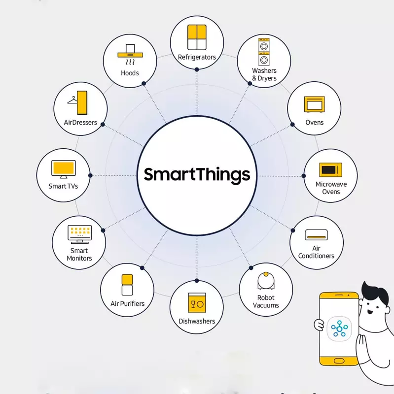 - Het is geen geheim dat alle grote technologiebedrijven al jaren hun eigen ecosystemen voor apparaten bouwen, maar het is Samsung met zijn eigen SmartThings-platform dat een vrij grote voorsprong heeft en een grote kans om te slagen in deze race dankzij zijn unieke wereldwijde marktpositie. De grootste smartphonefabrikant ter wereld xml-ph-0003@deepl.i Het is het startpunt voor alle slimme apparaten en diensten (een taxi bellen of een scooter huren doen we ook met een smartphone). Op dit moment vormen zich nog enkele "zwaartepunten" in het slimme huis - de tv (of slimme monitor) en de koelkast. Ook zij hebben een display en een besturingssysteem, waardoor een smart home hub mogelijk wordt. En (surprise surprise) Samsung is niet langer alleen van plan ze te produceren, maar vervaardigt ook dergelijke tv's, monitoren en koelkasten.