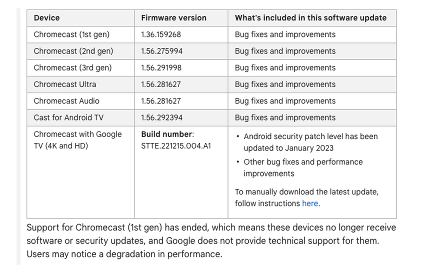 Google heeft aangekondigd dat het de ondersteuning voor de eerste generatie Chromecast stopzet.