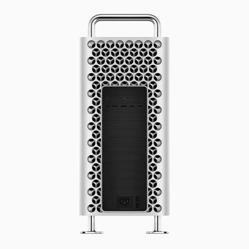 Hij heeft ook twee keer zoveel Thunderbolt 4-poorten - maar liefst acht. Hij ondersteunt tot zes Pro Display XDR's, plus Wi-Fi 6E en Bluetooth 5.3 voor snelle draadloze connectiviteit. Daarnaast zijn er 3 USB-A-poorten, 2 HDMI-poorten met hogere bandbreedte die een resolutie tot 8K en framerates tot 240 Hz ondersteunen, 2 10 Gbps Ethernet-poorten en een koptelefoonaansluiting. De Mac Pro heeft zes open PCIe Gen 4-uitbreidingskaartsleuven.