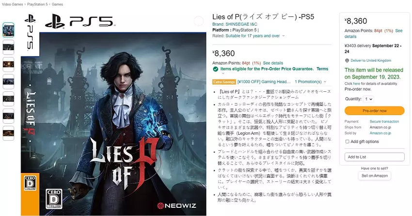 Volgens Amazon verschijnt de dystopische actiegame over Pinokkio, die velen doet denken aan Bloodborne, op 19 september. Op de pagina van de winkel staan alleen de PlayStation 4- en PlayStation 5-versies, maar het is onwaarschijnlijk dat de releasedatum op andere platforms anders zal zijn.
