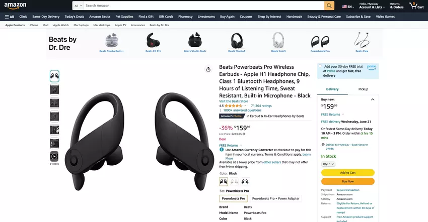 Het nieuwste actiemodel is de Powerbeats Pro voor $164.95 $249.95, -34%. De oortelefoons worden aangedreven door de H1-processor van Apple. Dezelfde chip zit in de AirPods. Het apparaat heeft bescherming tegen waterdruppels en zweet en een batterijduur tot 9 uur. Een oplaadetui verhoogt dit cijfer naar 24 uur.