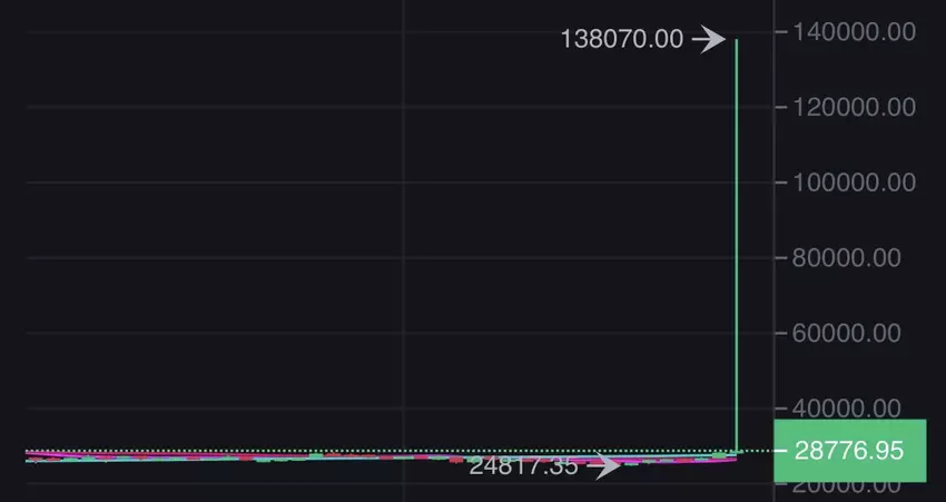 Bitcoin stijgt in seconden naar $138.070 op cryptocurrencybeurs Binance.US