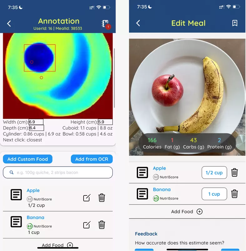 Volgens de ontwikkelaars combineert SnapCalorie veel nieuwe technologieën en algoritmes om calorieën te tellen. De app gebruikt ook dieptesensoren op ondersteunde apparaten om porties te meten en een team van menselijke beoordelaars voor een "extra kwaliteitslaag".